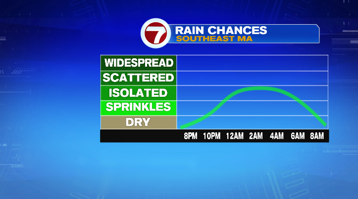 We can’t rule out an overnight shower, mainly across southeastern Massachusetts.