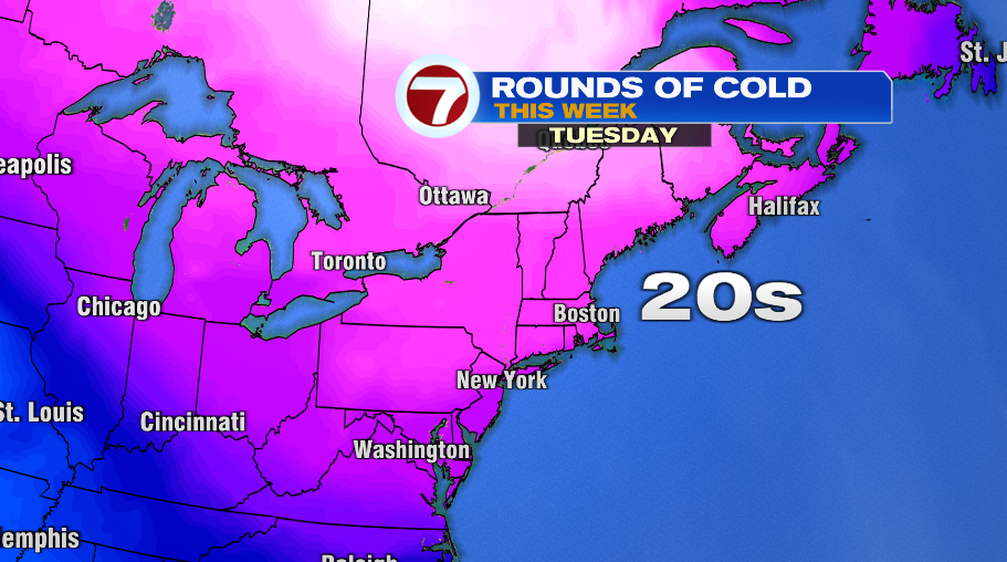 And Tuesday’s cold is just the beginning, we have two shots of cold lined up in the next 7 days. The first comes Tuesday with highs in the 20s. The next comes this weekend where highs will likely be stuck in the teens!