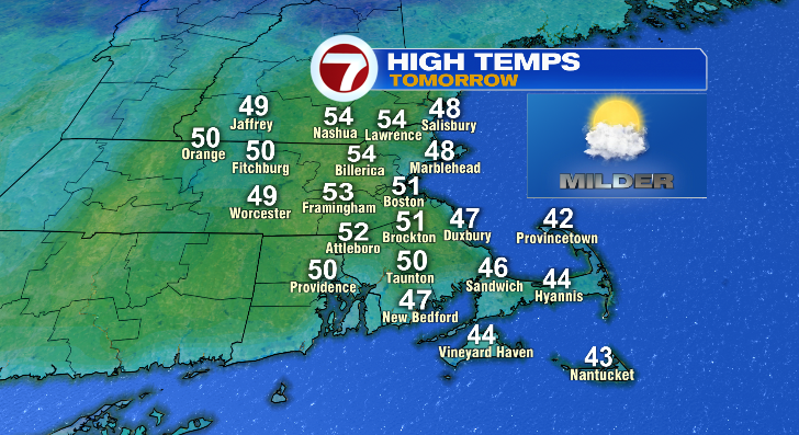 Highs will warm up nicely into the low 50s.